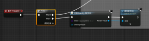 5.进入人物蓝图,选择事件开始时节点(用来一开始就显示道具数量)连接创建控件(创建控件选择刚刚的蓝图控件)创建控件连接添加到视口(创建控件的return value也要连接上添加到视口的目标节点)