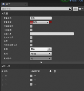 打开刚刚创建的游戏实例,创建一个你需要的数组(数组是因为我觉得数组里面可以存的东西多点,不用每有一个东西就写一个变量,多一个东西就在数组里面多加一个值就好了)